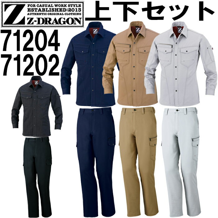 【上下セット送料無料】 ジ—ドラゴン(Z-DRAGON) 長袖シャツ 71204 (4L・5L)&ノータックカーゴ 71202 (112cm・120cm) セット (上下同色) 自重堂 秋冬用作業服 作業着 取寄