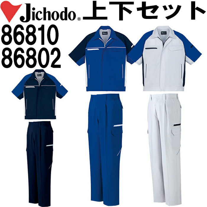 【上下セット送料無料】 自重堂(JICHODO) 半袖ジャンパー 86810 (4L・5L) & ワンタックカーゴパンツ 86802 (112cm・120cm) セット 作業服 作業着 取寄