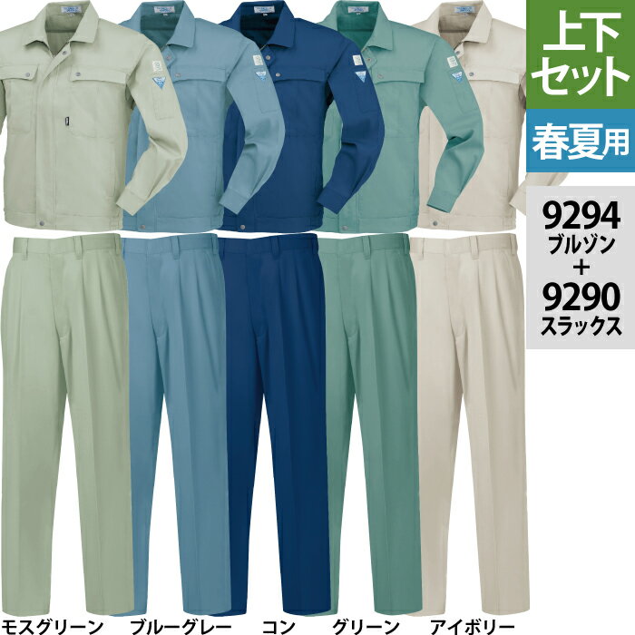 送料無料 作業服 春夏用 ジーベック 上下セット 9294 長袖ブルゾン & 9290 ツータックスラックス S〜XL 作業着 作業ズボン