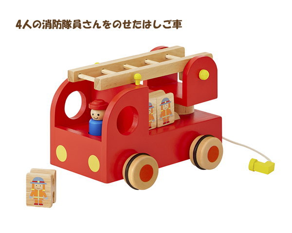 ・Spec 商品名 カタカタ 森の消防隊 対象年齢 3歳〜 主な素材 天然木 サイズ 本体 w約21.5cm×d約15cm×h約13.5cm 最小パーツ w約3cm×d約2.5cm×h約4cm 重さ 約680g セット内容 本体×1 運転手×1 消防士ブロック×4