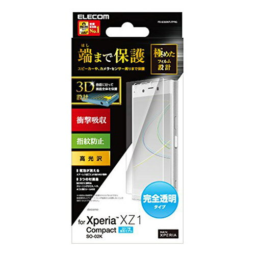 【対応機種】Xperia XZ1 Compact / SO-02K(docomo)端末のガラス面と同じラウンド形状を再現した3D設計で、画面の端まで保護するXperia (TM) XZ1 Compact用フルカバーフィルムです。